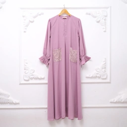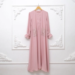 - Busui & Wudhu Friendly : Menggunakan ritz (resleting) di dada depan dan lengan & Aksen ruffle dibagian pergelangan yang dilengkapi dengan tali