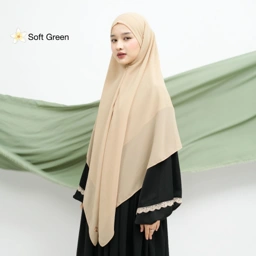 - Jahitan rapih dilengkapi sun label exclusive disisi kanan bawah bagian sudut depan kerudung