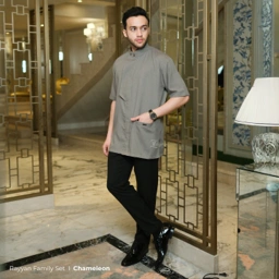 - Model kerah tegak dengan pola lengan kemeja